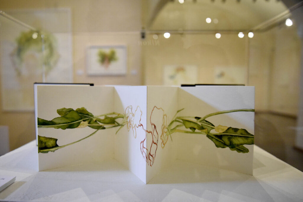 El edificio Carolino, ubicado en el corazón de la ciudad de Puebla, alberga la exposición “La que renace en las aguas” de Alejandra Alarcón, muestra compuesta por 100 piezas, entre acuarelas, animación, videoarte, objetos y libros de artista.