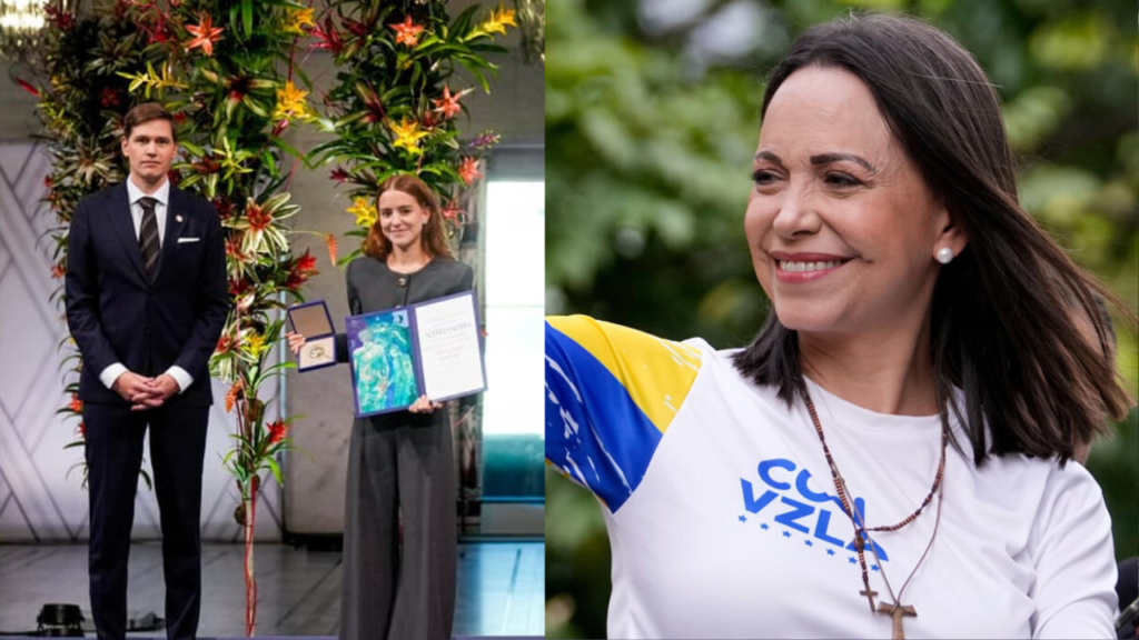 Corina Sosa, recibió frente a una fotografía de su madre el diploma y la medalla del Nobel de la Paz, entregados por el presidente del Comité Noruego del Nobel, Jørgen Watne Frydnes. La joven agradeció el reconocimiento a la labor de su madre y expresó su esperanza de que Venezuela logre la transición hacia la democracia.