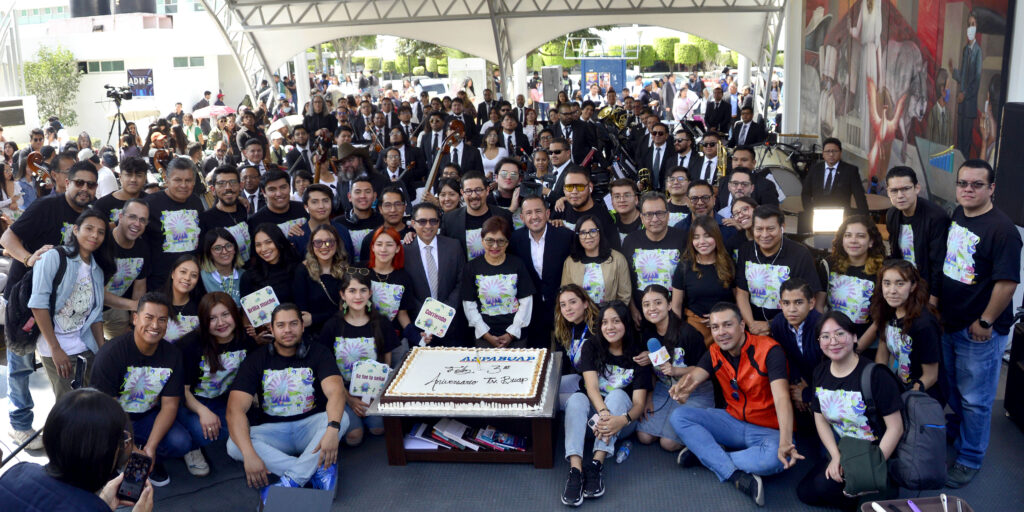 Acompañada del vicerrector de Extensión y Difusión de la Cultura, José Carlos Bernal; la directora del Complejo Cultural Universitario, Betzabeth Díaz Sánchez; así como de los directores de TVBUAP y de la Facultad de Administración, Ricardo Cartas Figueroa y José Aurelio Cruz de los Ángeles, la doctora Cedillo encabezó la tradicional partida de pastel, un evento que estuvo engalanado con la música de la Orquesta Sinfónica de la BUAP.