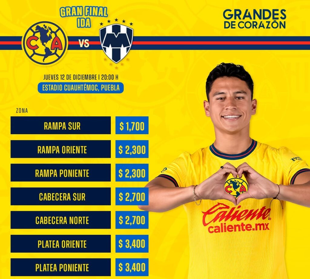 El Club América reveló los precios de los boletos para el partido de ida de la final del Torneo Apertura 2024 de la Liga MX, que se jugará en el estadio Cuauhtémoc, casa del Puebla.