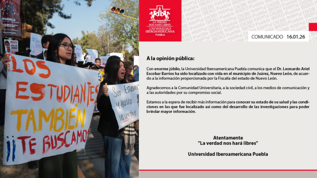 La aparición del profesor sucede tan solo un par de horas después de que la comunidad de la IBERO se manifestará pacíficamente la mañana de este viernes en el bulevar del Niño Poblano, exigiendo su búsqueda y denunciando, al mismo tiempo, irregularidades en su detención.