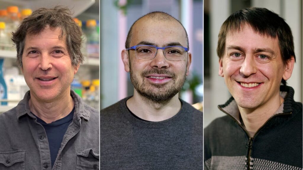 David Baker, Demis Hassabis y John Jumper recibieron la noticia del premio que les será entregado físicamente en diciembre próximo, por sus investigaciones relacionadas con la creación y la predicción de la estructura de las proteínas usando IA.