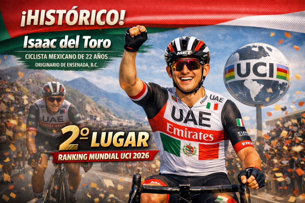 Isaac del Toro, ciclista mexicano de 22 años originario de Ensenada, Baja California, hizo historia al colocarse en el segundo puesto del ranking mundial de la Unión Ciclista Internacional (UCI) 2026.