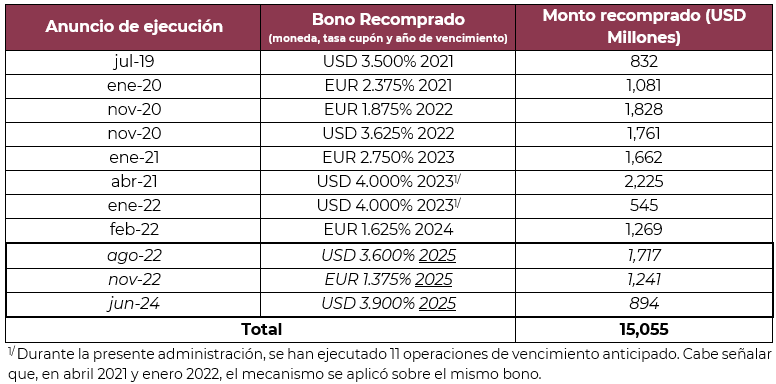 Durante el periodo 2019-2024, se ha refinanciado aproximadamente 15,055 millones de dólares mediante el uso de la cláusula de vencimiento anticipado.