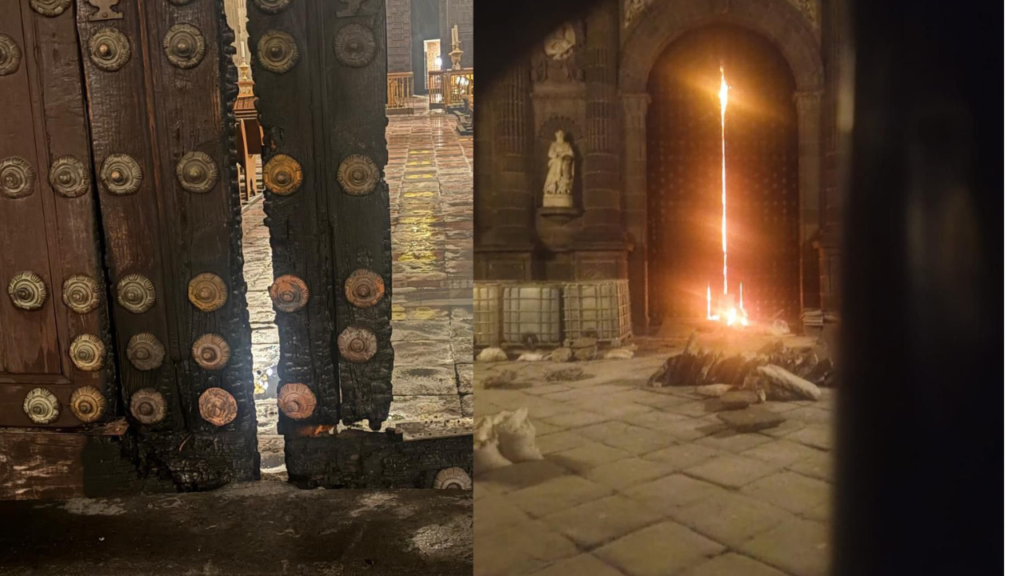 De acuerdo con el comunicado emitido por la arquidiócesis, los hechos ocurrieron alrededor de las 02:00 de la madrugada cuando dos sujetos ingresaron al atrio de la Catedral saltando la reja por el lado zócalo, para posteriormente prender fuego a la puerta.
