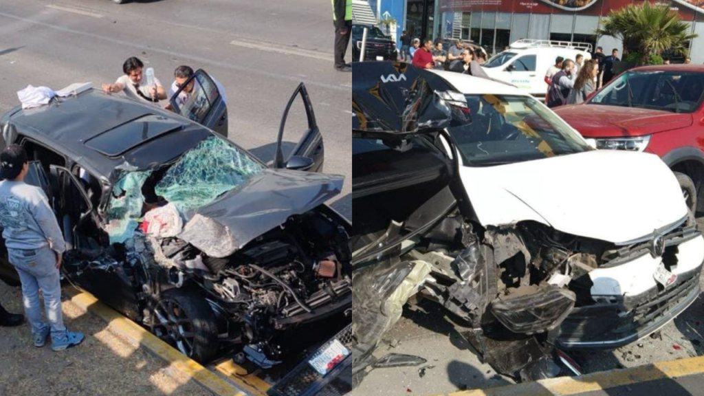 Ocho vehículos se vieron involucrados en un fuerte accidente vial sobre la vía Atlixcayotl; De acuerdo con versiones preliminares, el percance habría sido provocado por un conductor que presuntamente participaba en una carrera clandestina.