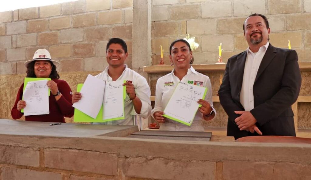 Cabe destacar que la firma del compromiso estuvo encabezada por la candidata a la diputación local por el distrito 9, Norma Pimentel. También fue firmado por su suplente Dafne García y por los candidatos a la diputación federal por el distrito 10, Karina Pérez Popoca y por el del distrito 9 Tony Gali.